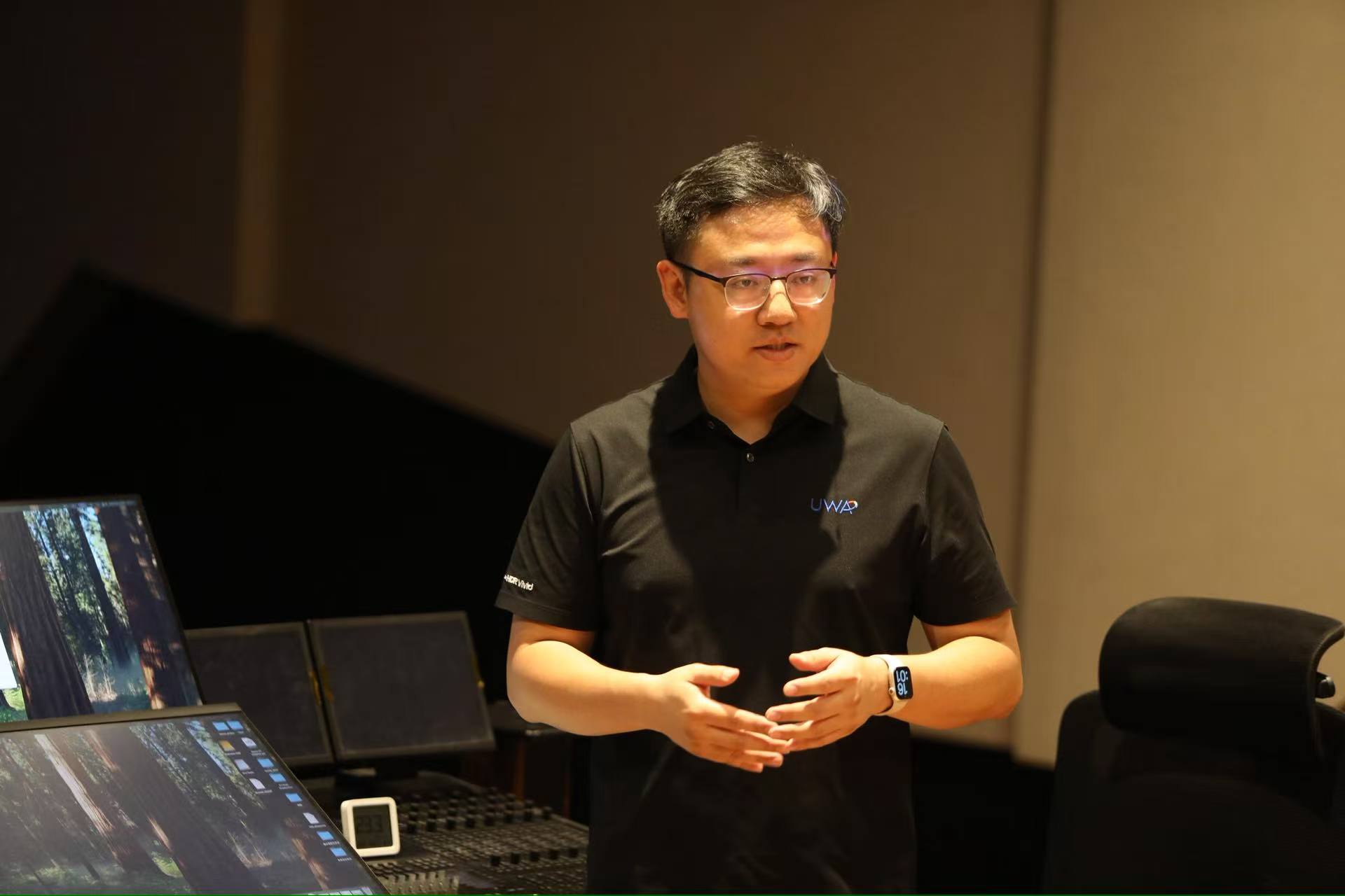 UWA工具与制作者生态负责人谢传子、UWA HDR Vivid培训推⼴总监罗超、UWA Audio Vivid技术总监金瑞丰三位专家,与四川传媒学院录音艺术专业师生共同参与。